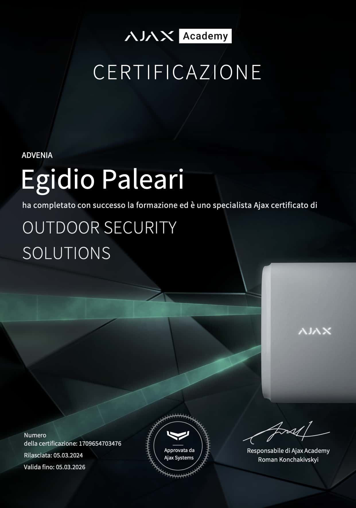 Siamo Partner autorizzati e certificati per l'installazione e la manutenzione dei sistemi AJAX
